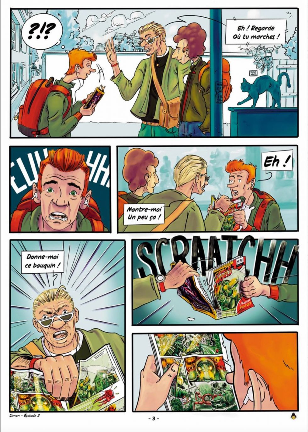 « Simon » est un cycle de BD que j’ai initié en 2001 après la disparition prématurée de Simon, mon plus jeune frère. Je voulais donner du sens à ce drame. Si les premières planches sont très maladroites, je pense que le second chapitre laisse augurer d’une certaine cohérence. Depuis, je poursuis ce projet de manière sporadique.
