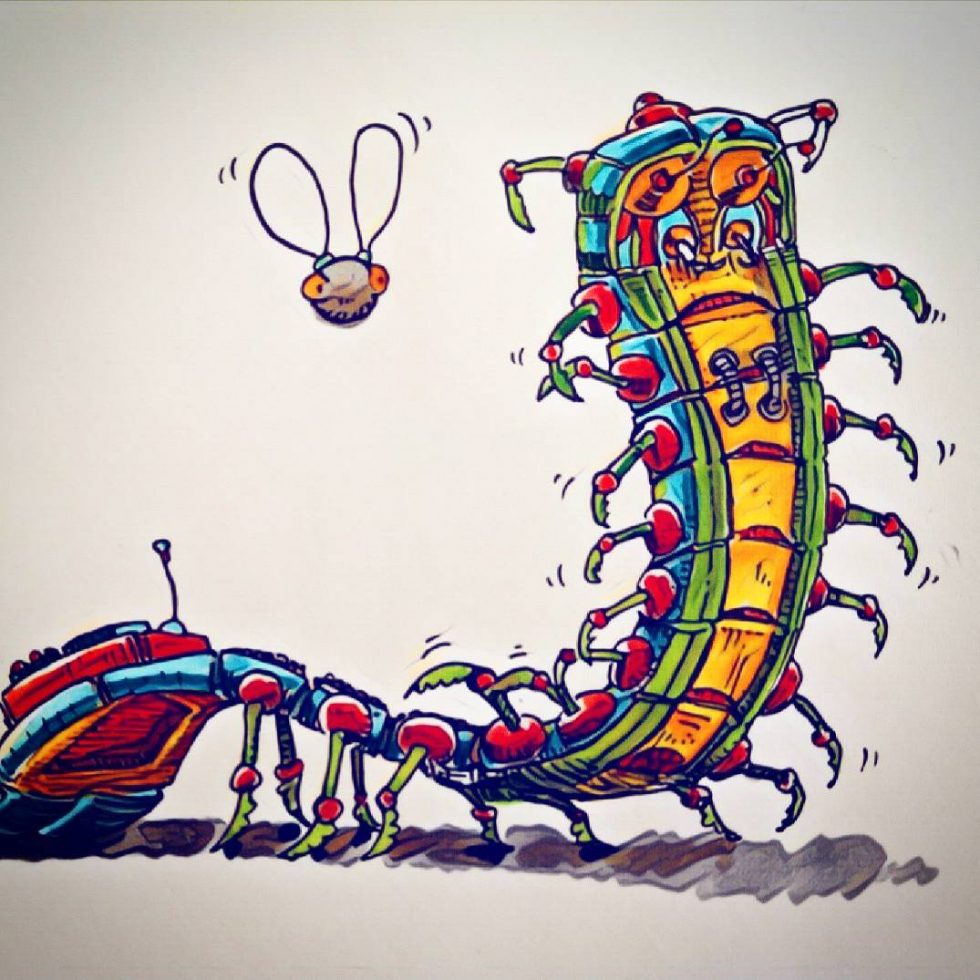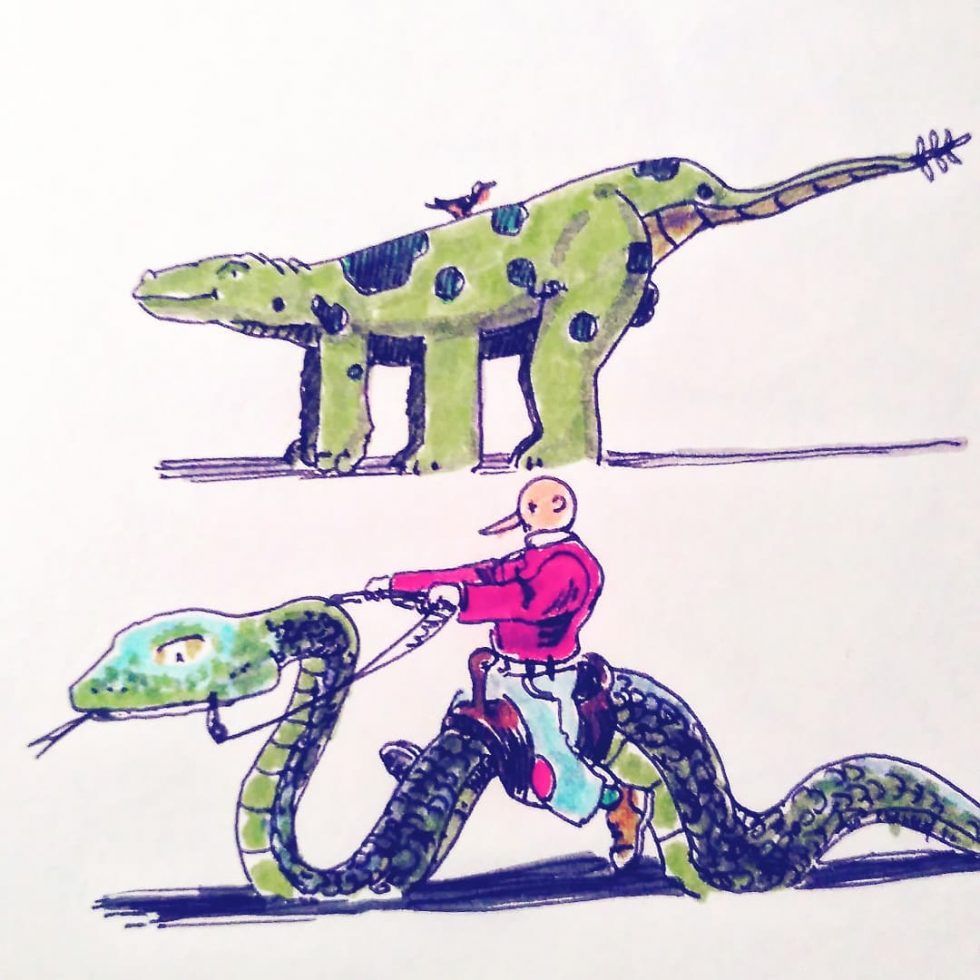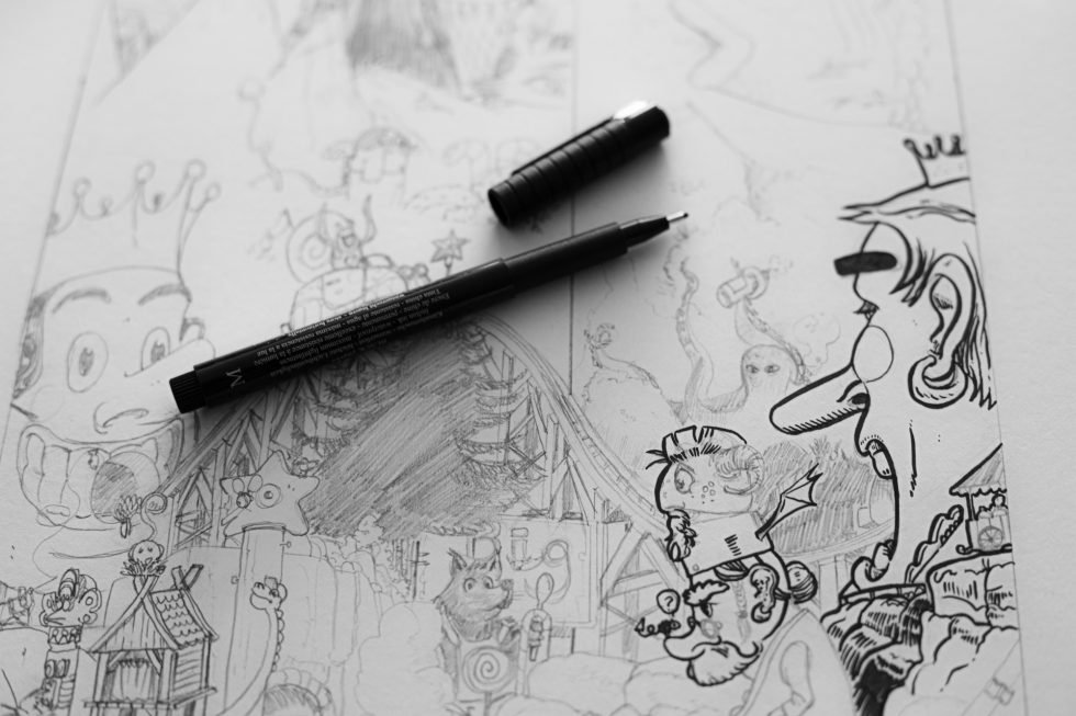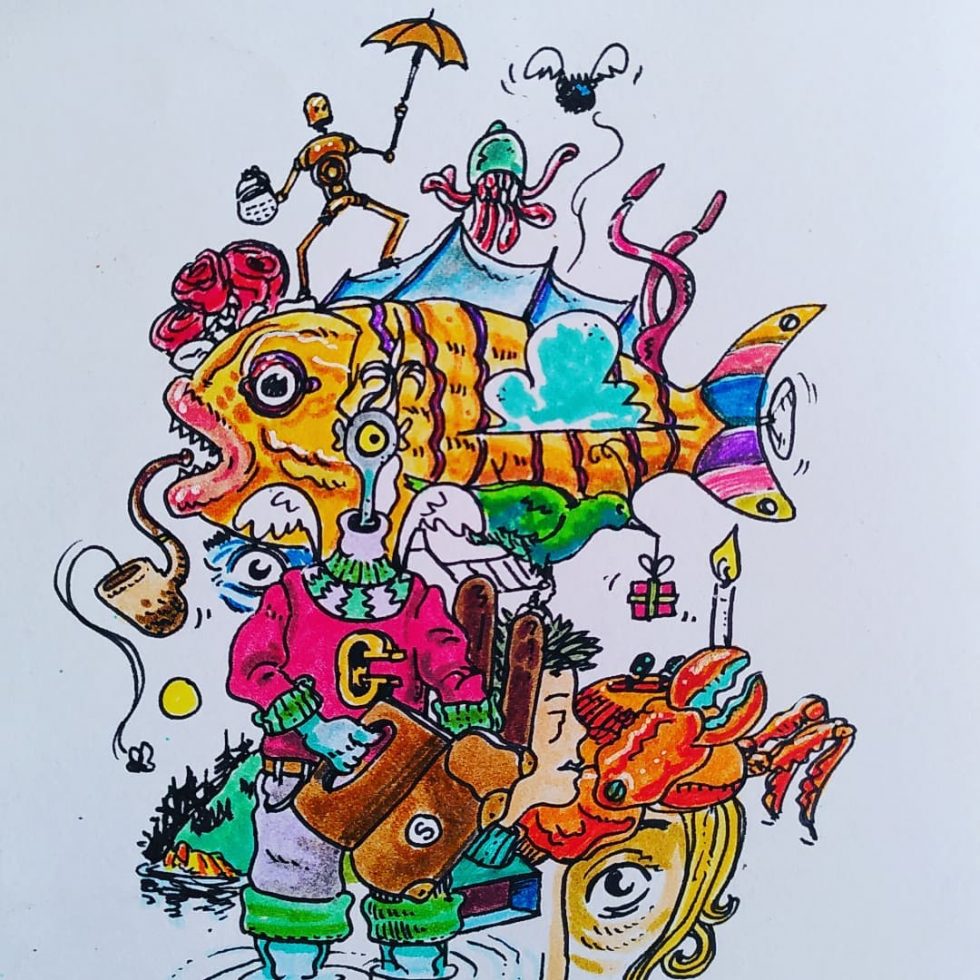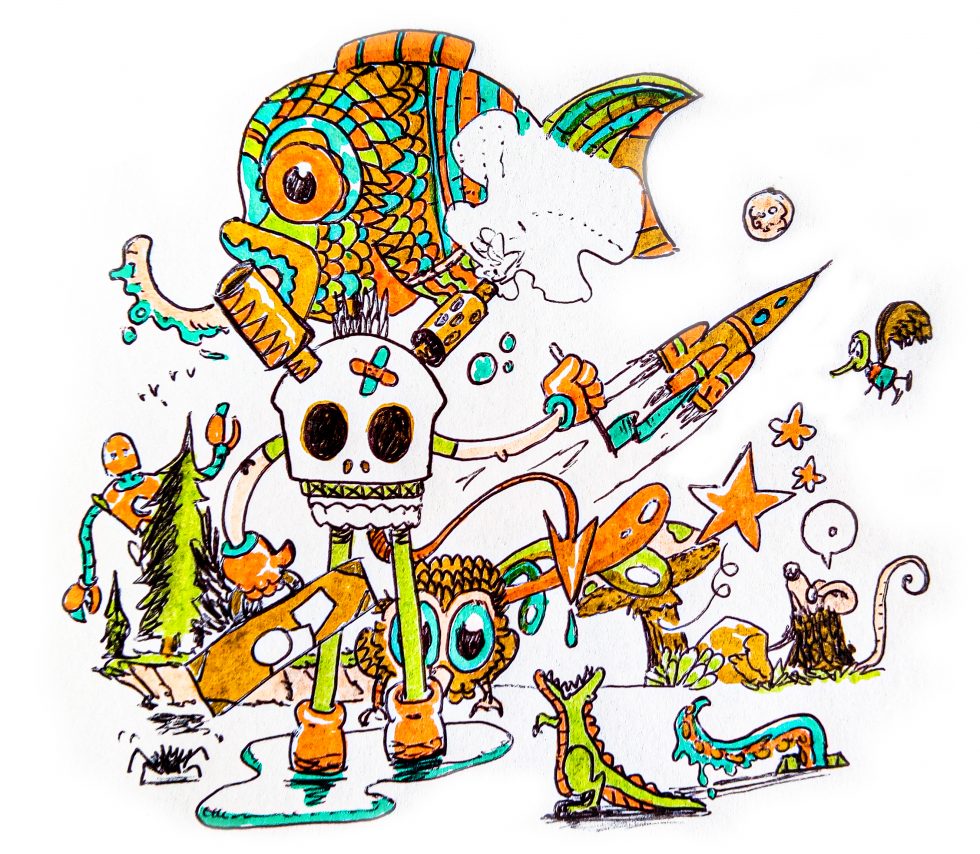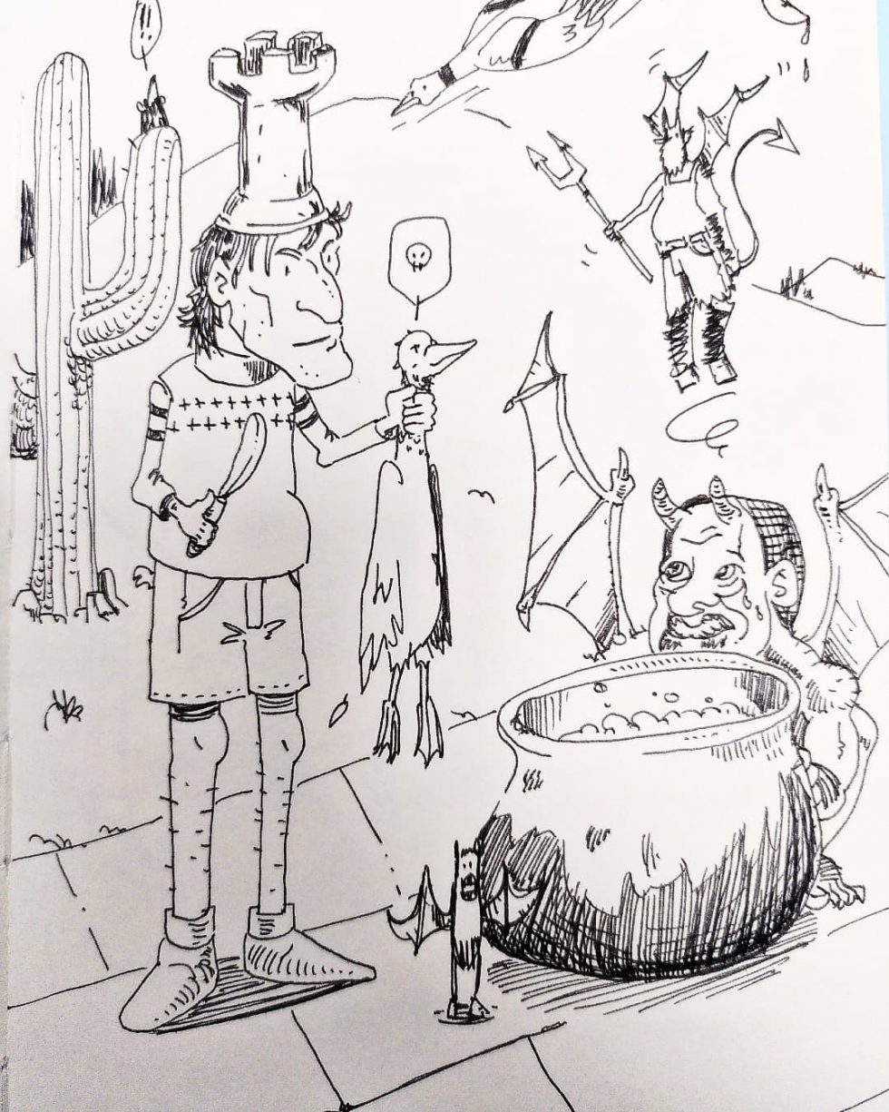 Parfois, il est bon de laisser vagabonder son esprit sans avoir pour objectif de réaliser une illustration ou une bande dessinée. Juste le plaisir de laisser courir le crayon sur la feuille, de tester de nouveaux sentiers graphiques, de laisser libre cours à son foutoir intérieur.