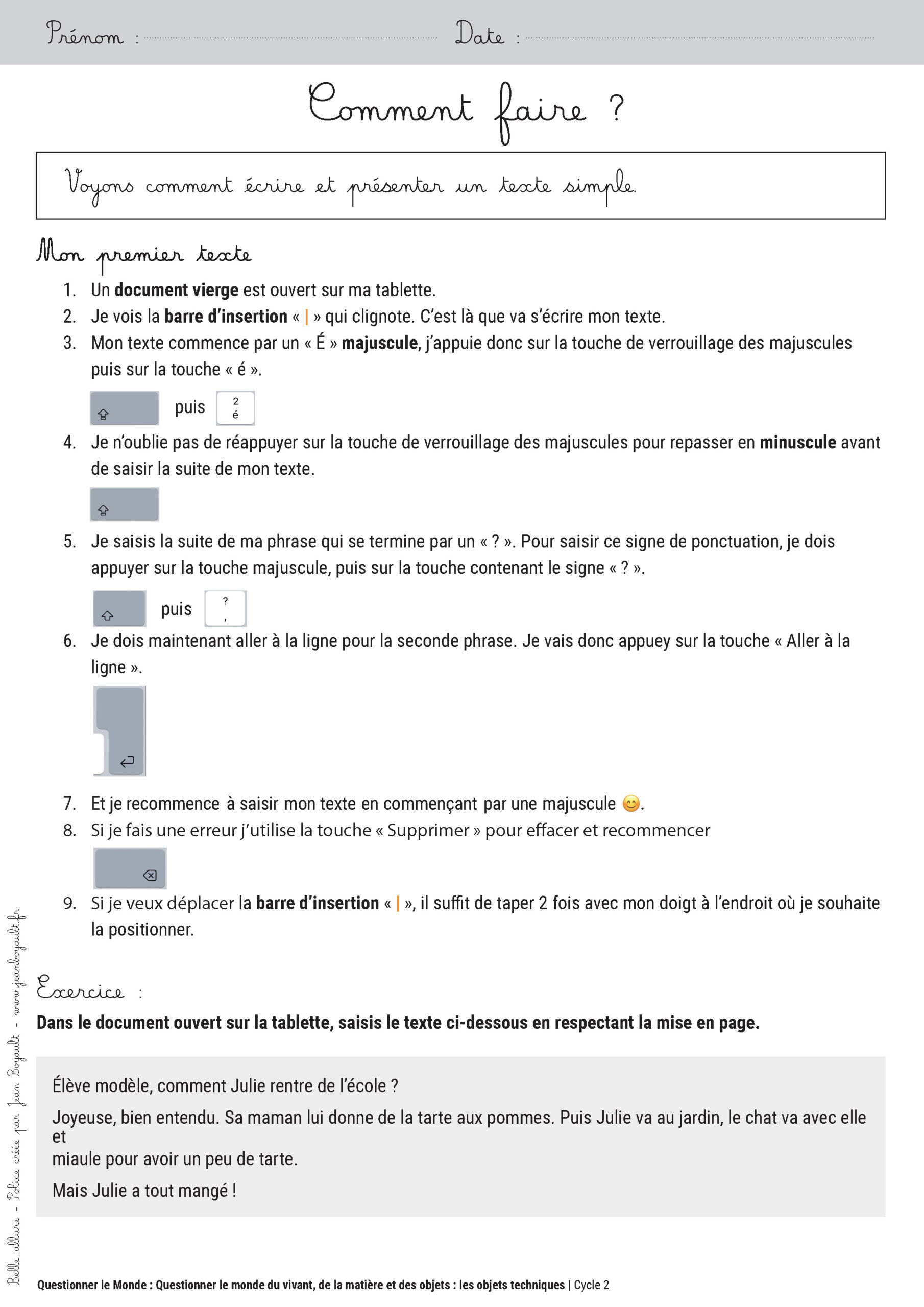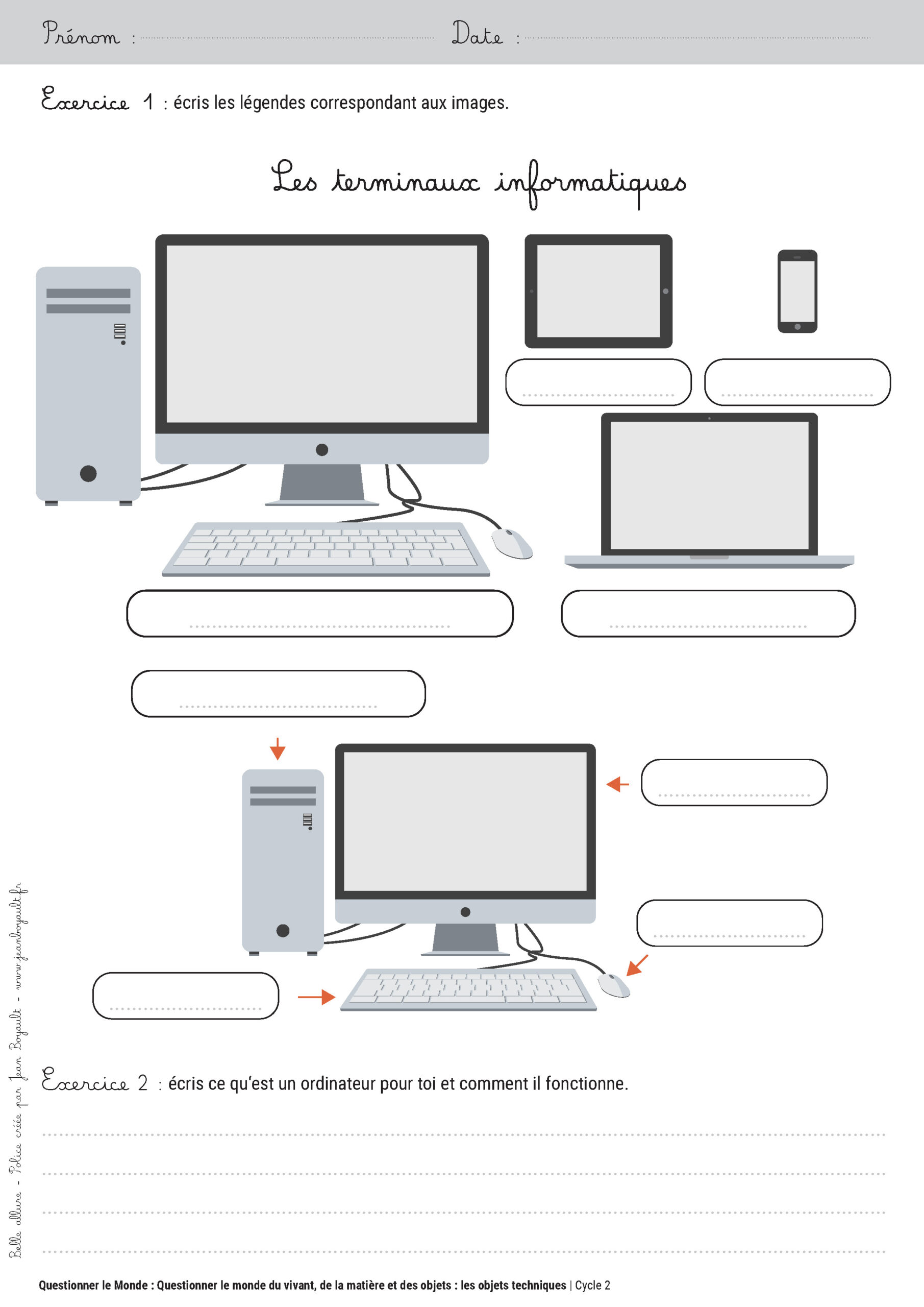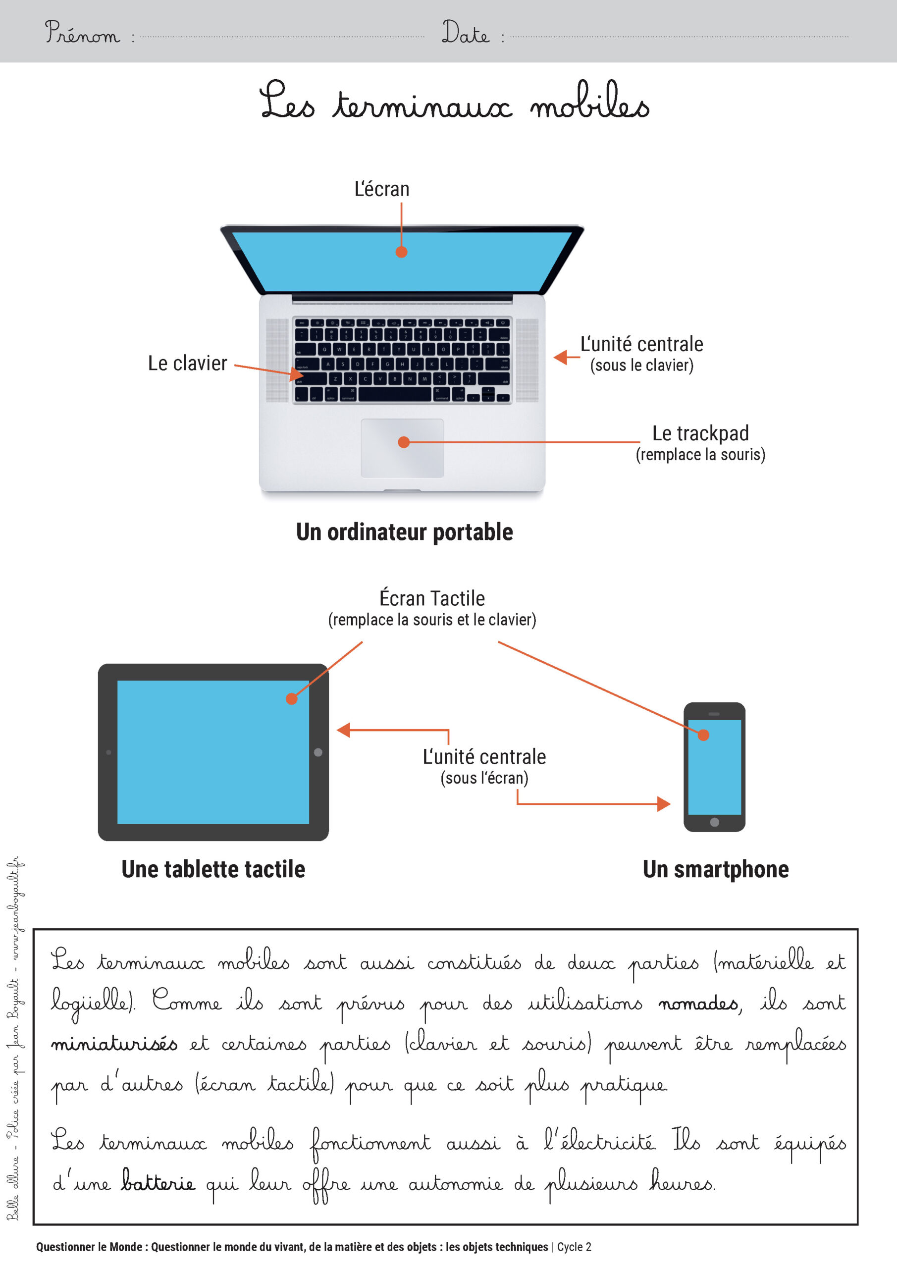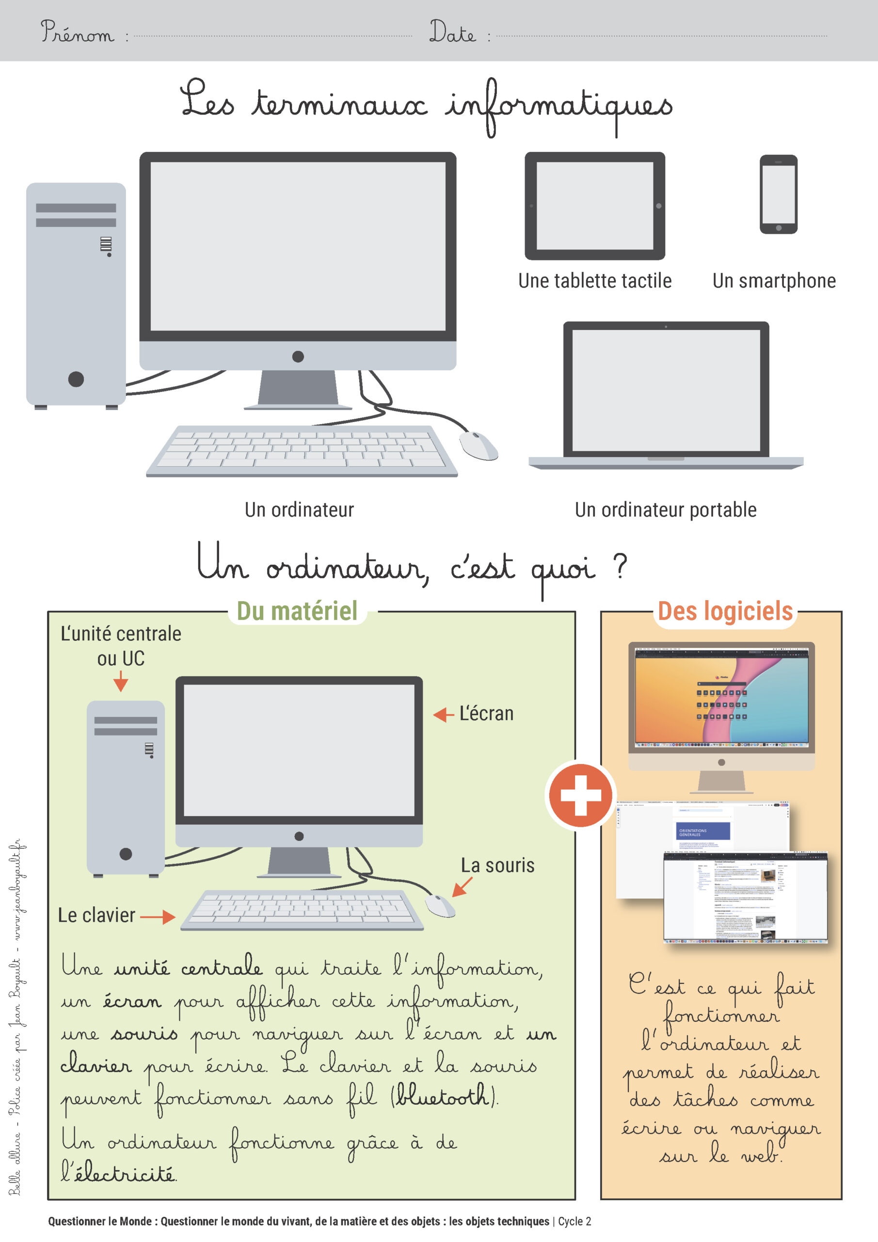 Je propose ici les fiches réalisées pour la présentation des terminaux informatiques (initiation au numérique des CE1).